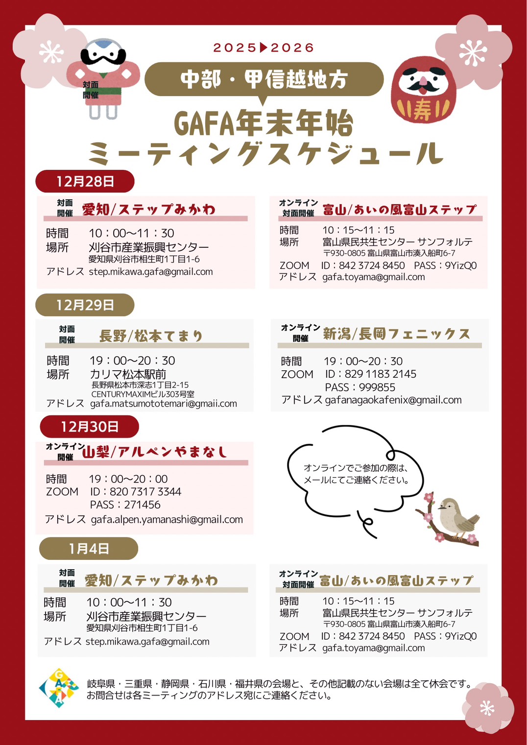 【中部・甲信越】年末年始/ミーティング一覧