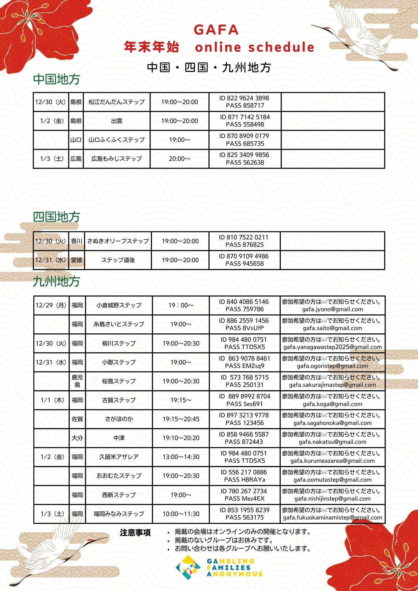 【中四国・九州】年末年始/ミーティング一覧