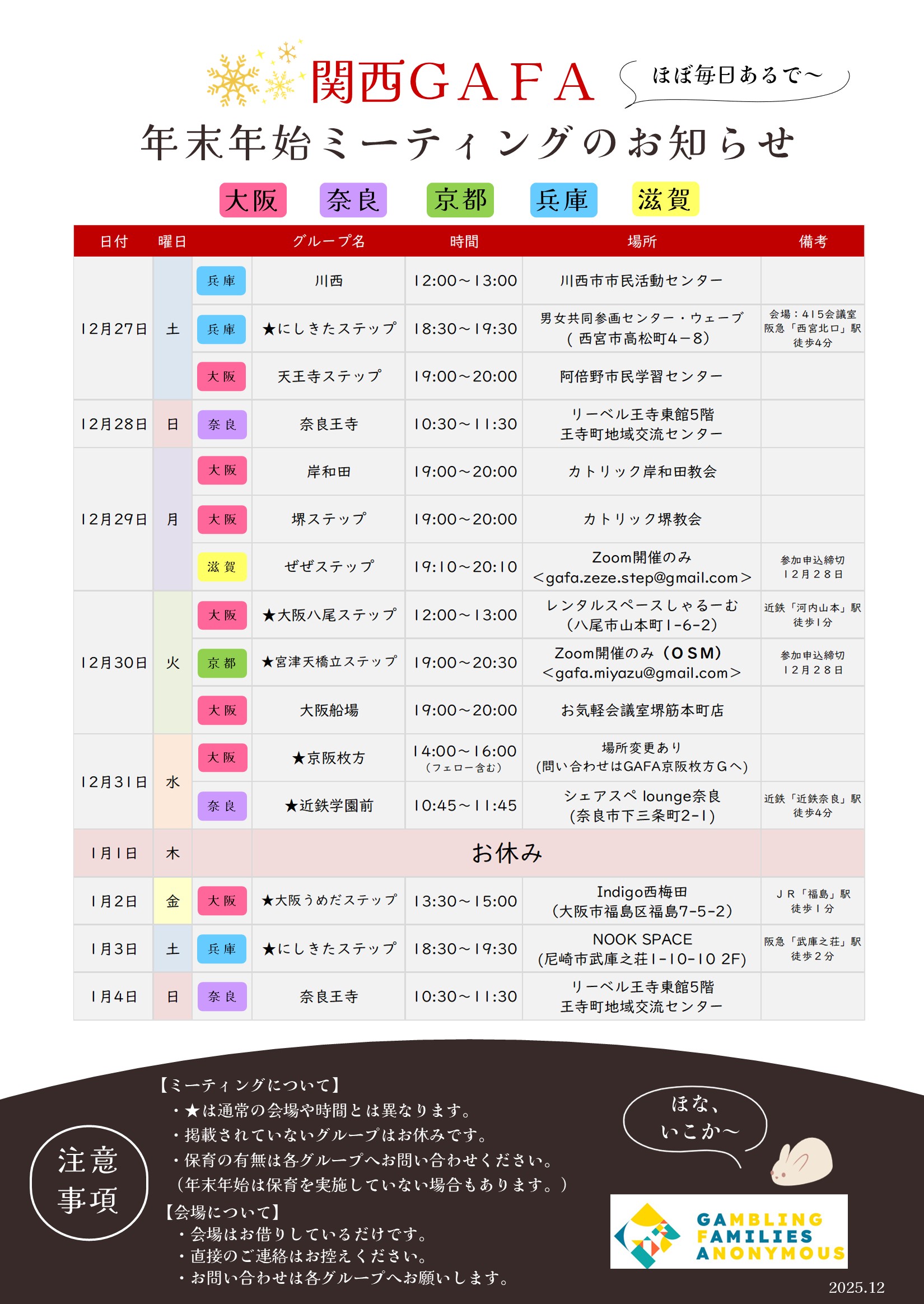 【関西】年末年始/ミーティング一覧