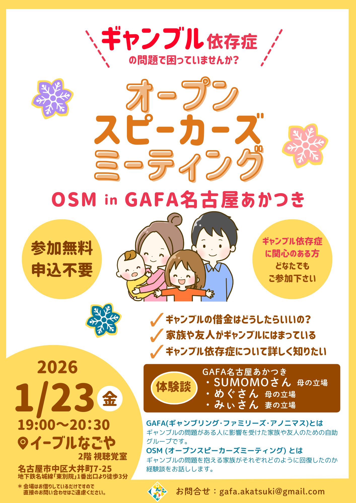 OSM(オープンスピーカーズミーティング)を開催します。ぜひご参加ください。〈日時〉2026年1月23日(金) 19:00~20:30〈場所〉イーブルなごや 2…