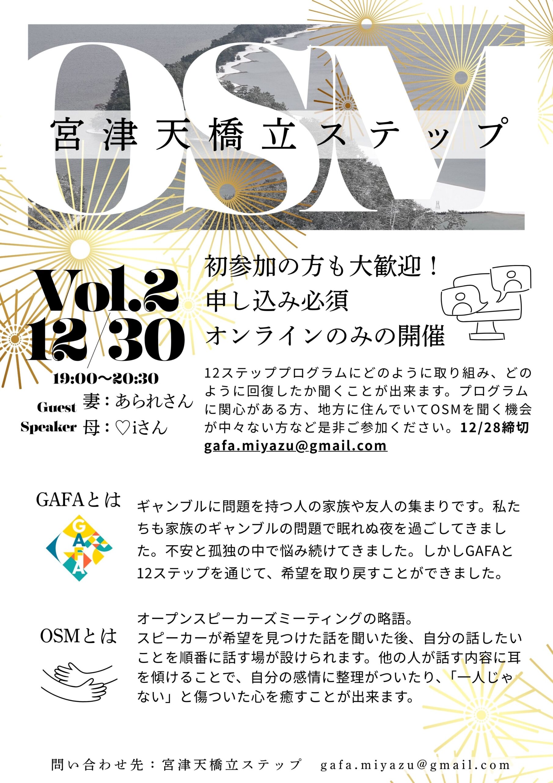 2025年4月6日(日)、GAFA (Gambling Families Anonymous) がスタートしました。 私たちは、ギャンブルに問題を抱える人の家族…